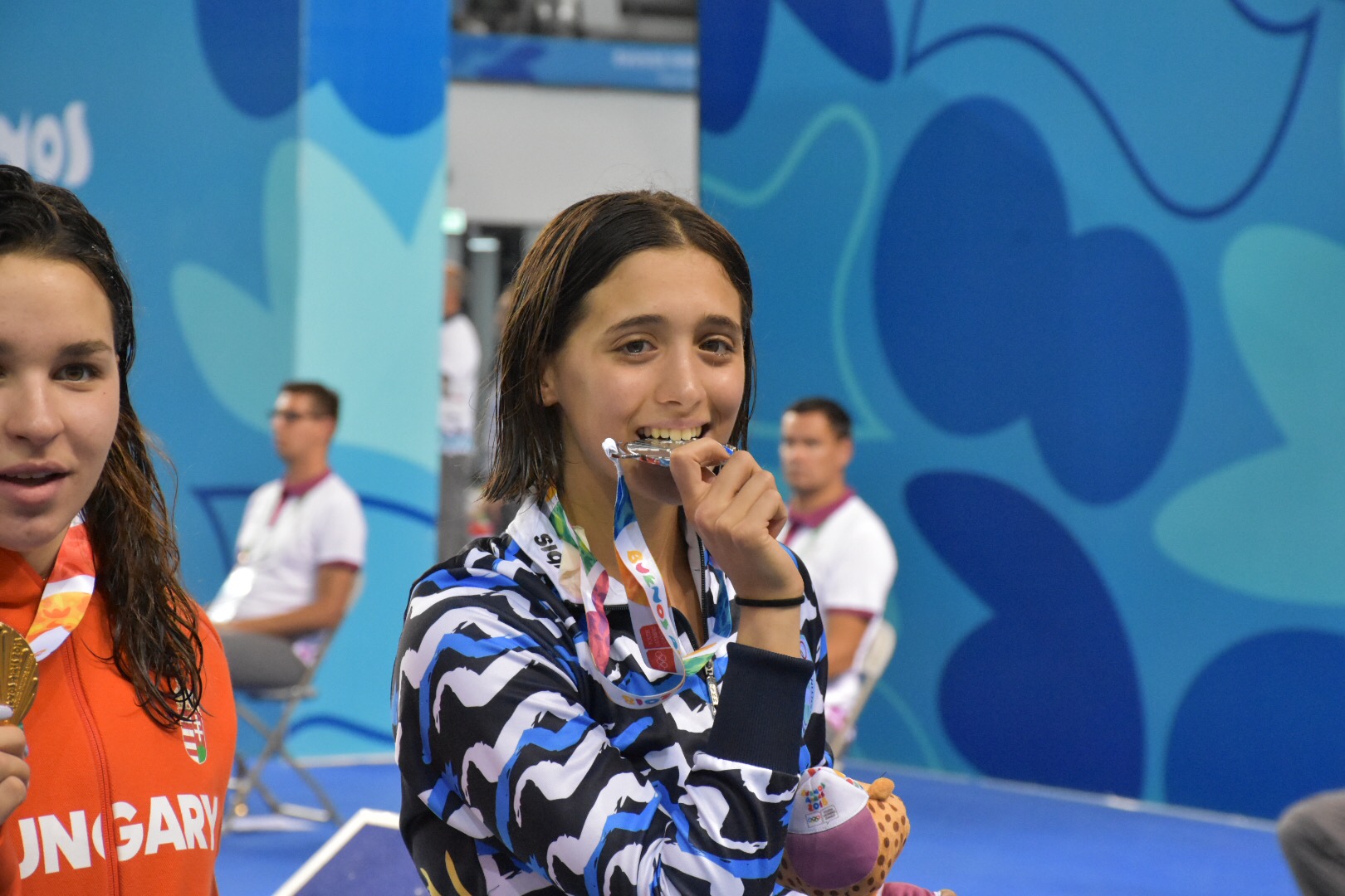 Delfina Pignatiello se colgó esta tarde la medalla de plata en 800 metros libre de los Juegos Olímpicos de la Juventud Buenos Aires 2018 al terminarlos en 8m32s42 y le dio a la Argentina la primera presea plateada en estos YOG.
